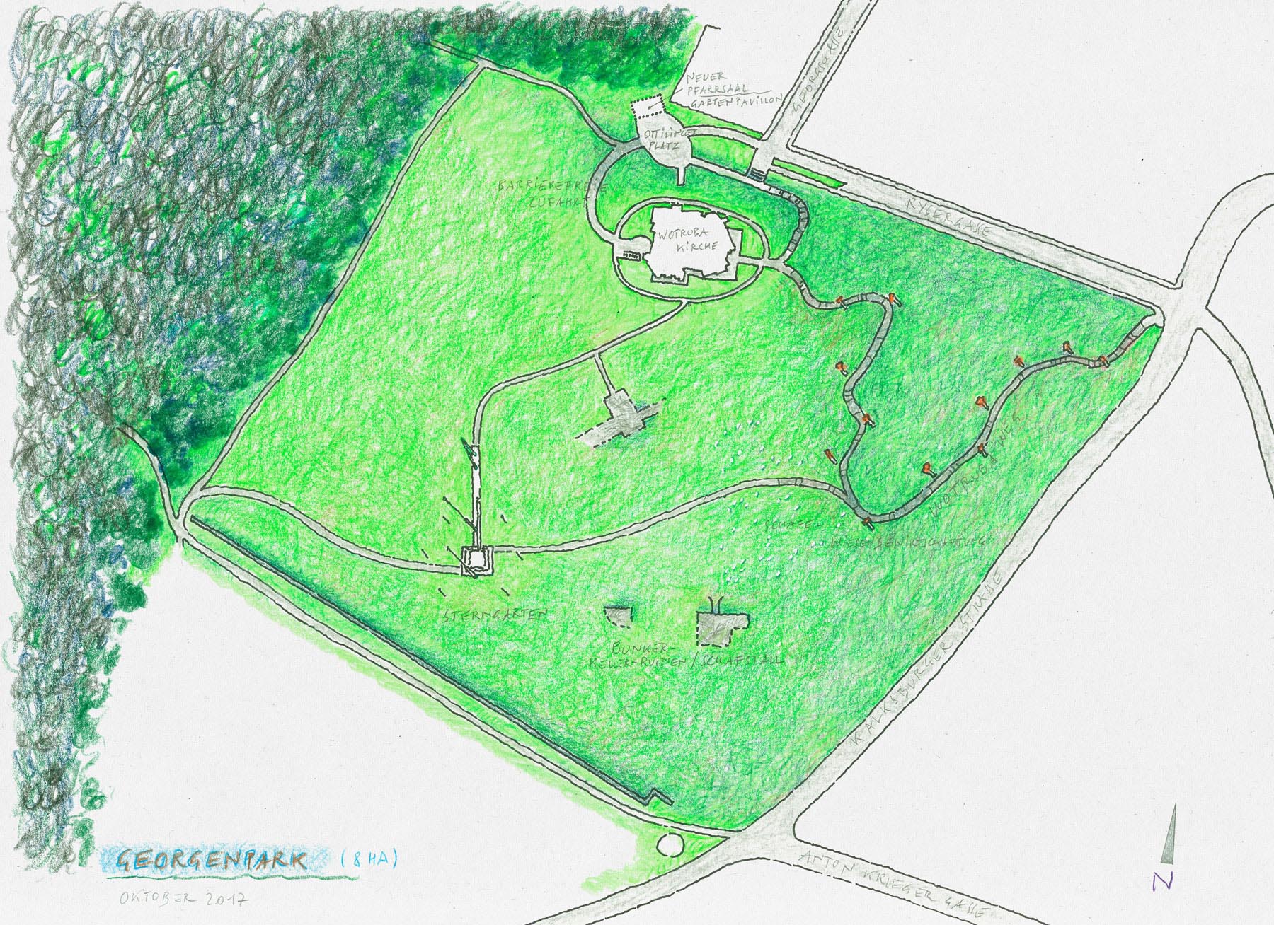 - Zum Anspruch: „Licht für unsere Kinder…!“ Ein heller, der Kirche zugewandter Pavillon könnte problemlos an einem neuen Ottillingerplatz errichtet werden.